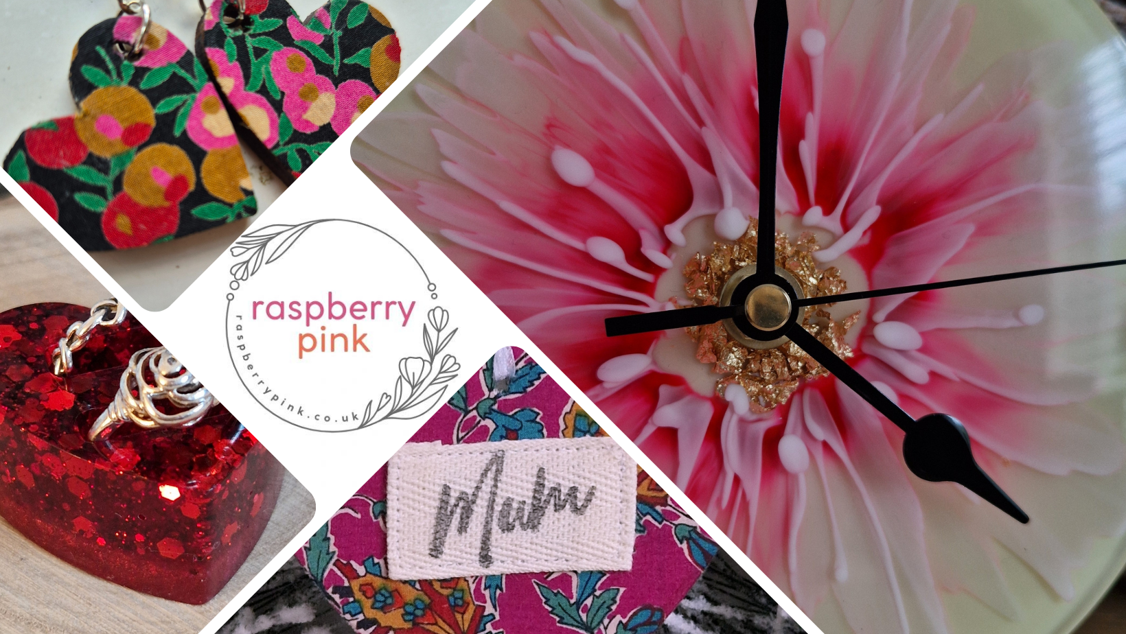 I have been obsessed with crafting since I was small, and I've tried so many crafts over the years, including knitting, sewing, embroidery, tapestry, cross stitch, candle making, soap making and jewellery making. I now work mostly with resin, clay, vintage Liberty print fabric, beads, card and paper, making home accessories and wall art, jewellery and useful items like keyrings and clocks. You may notice that flowers are a very prominent feature in my work, I am passionate about all things floral, and flowers are my go to for inspiration.