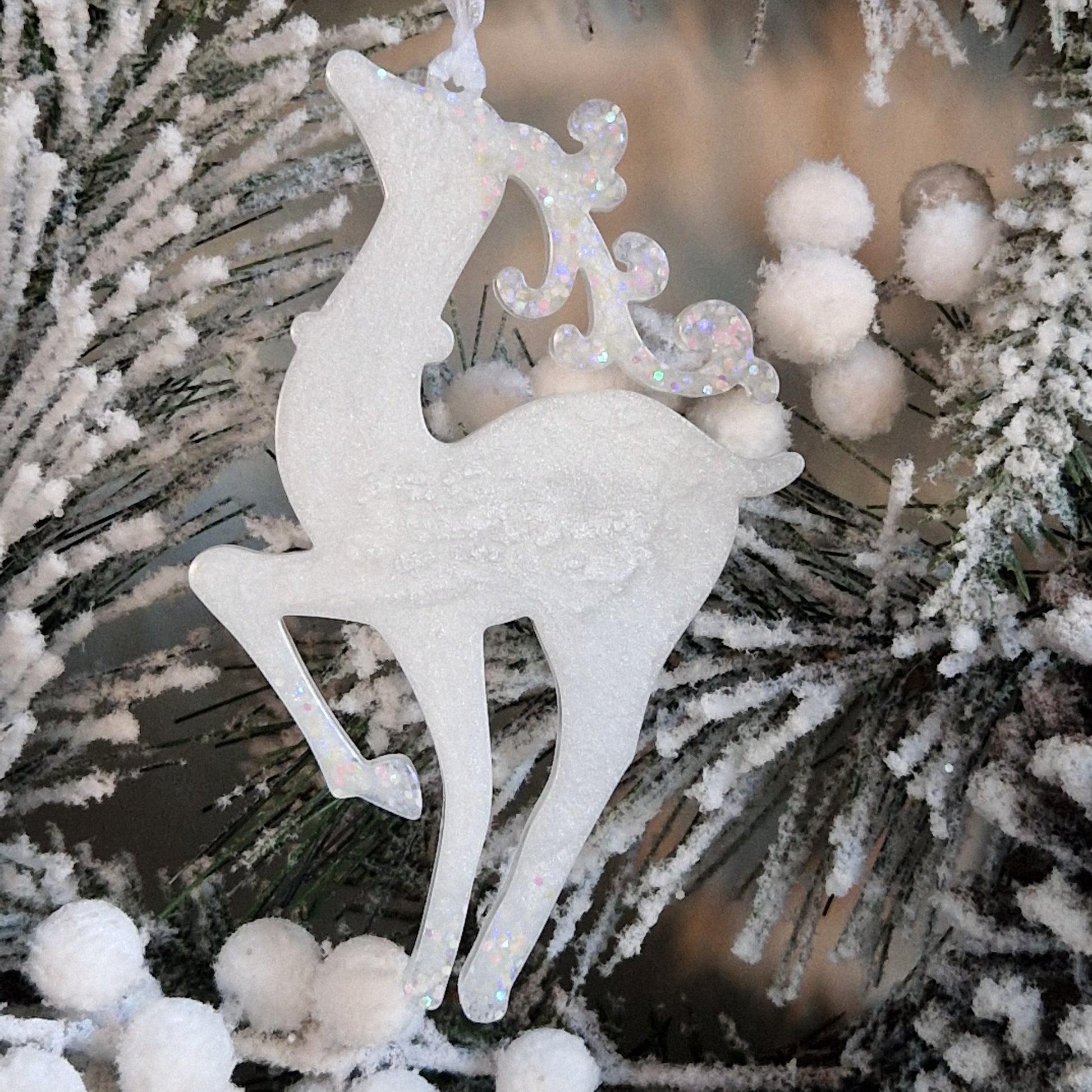 Resin Reindeer Decoration - Noella in White Sparkle